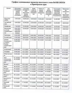 ЕДИНЫЙ ГРАФИК ПРОВЕДЕНИЯ ВСОШ В ПРИМОРСКОМ КРАЕ